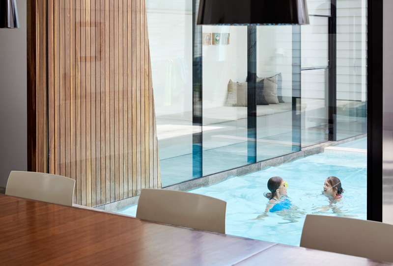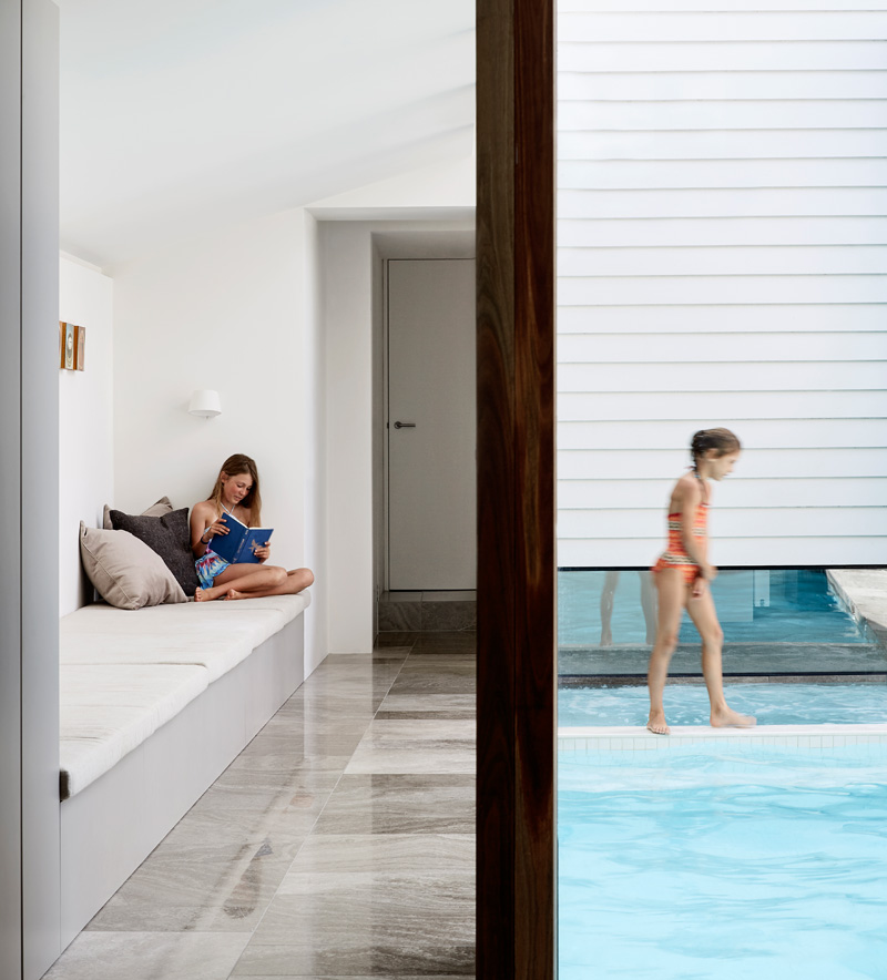 service space. A glazed link with built in daybed borders the pool