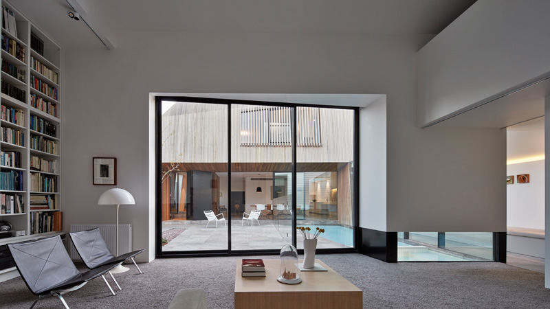 glazed link. The courtyard with its pool, gives the new building its